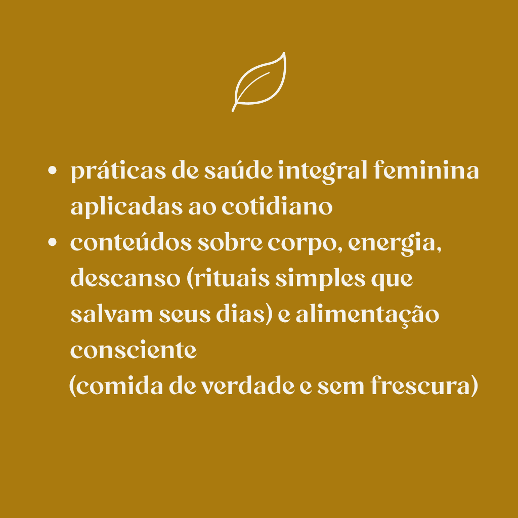 Sou criadora de um ecossistema de saúde integral feminina, desenvolvimento pessoal e vida consciente.